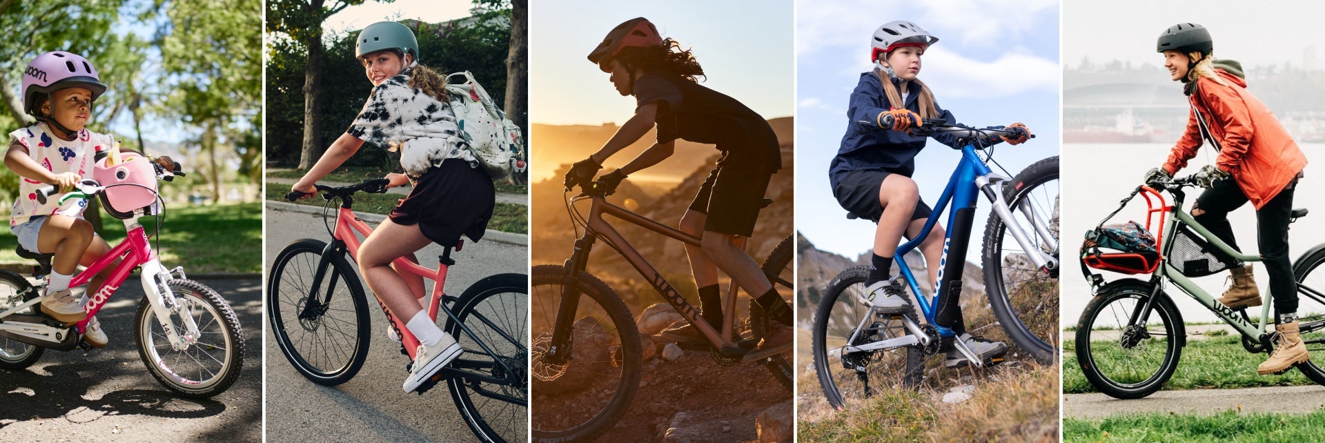 Fra en højde på 115 cm og op (dvs. fra seksårsalderen) kan dit barn vælge mellem seks forskellige woom modeller: woom GO, woom EXPLORE, woom OFF, woom OFF AIR, woom UP og woom NOW.
