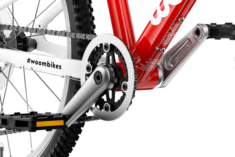 Længde og pedalafstand på pedalarmen af høj kvalitet fra woom er tilpasset ergonomisk perfekt til barnets krop. Til en godt tilpasset benafstand og et helt naturligt bevægelsesforløb. Og bukseben kommer ikke i klemme takket være kædebeskyttelsesringen!
