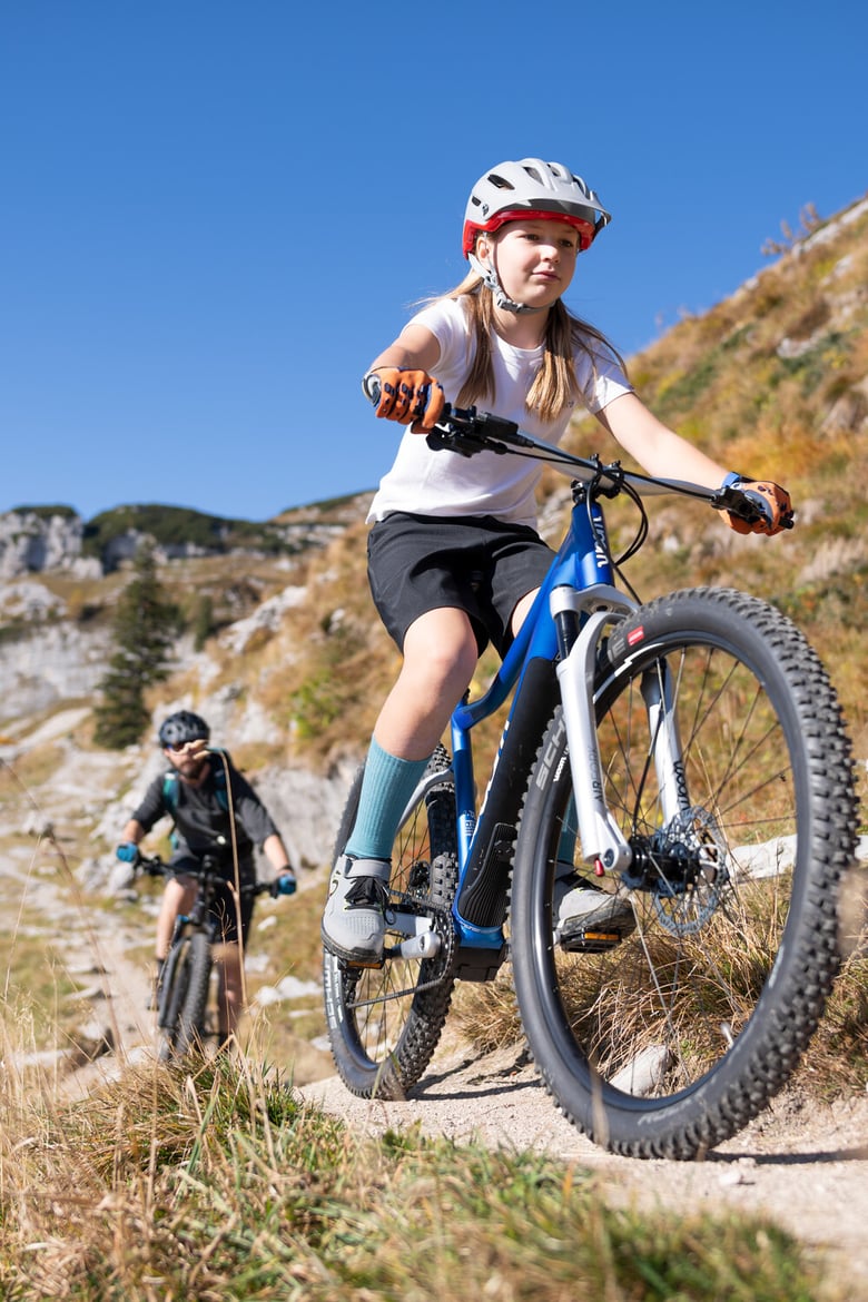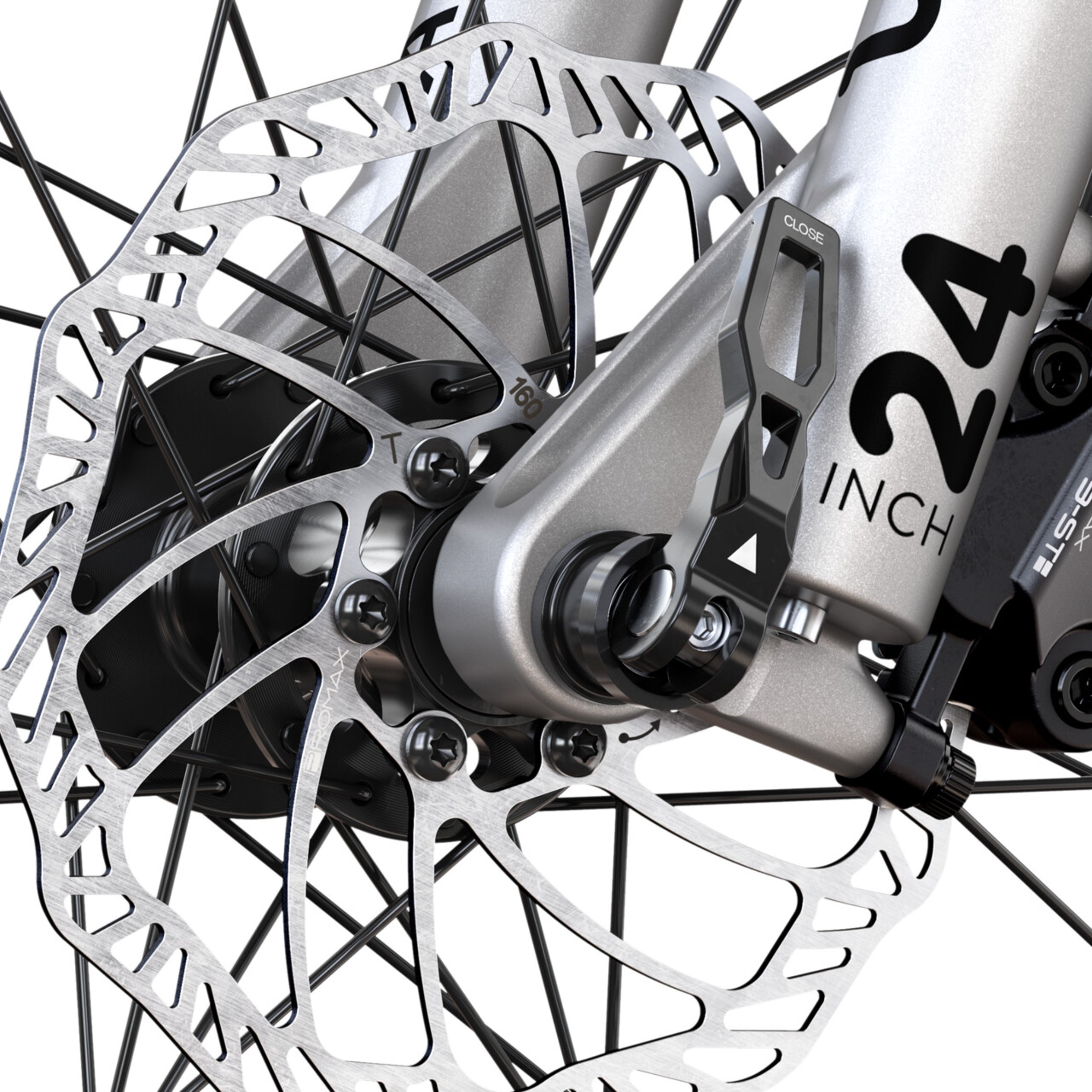 Die gut dosierbaren Scheibenbremsen in Kombination mit den kindgerechten Bremshebeln für geringe Fingerreichweite erhöhen die Sicherheit und Kontrolle auch in schwierigem Gelände und bei nassen Bedingungen.