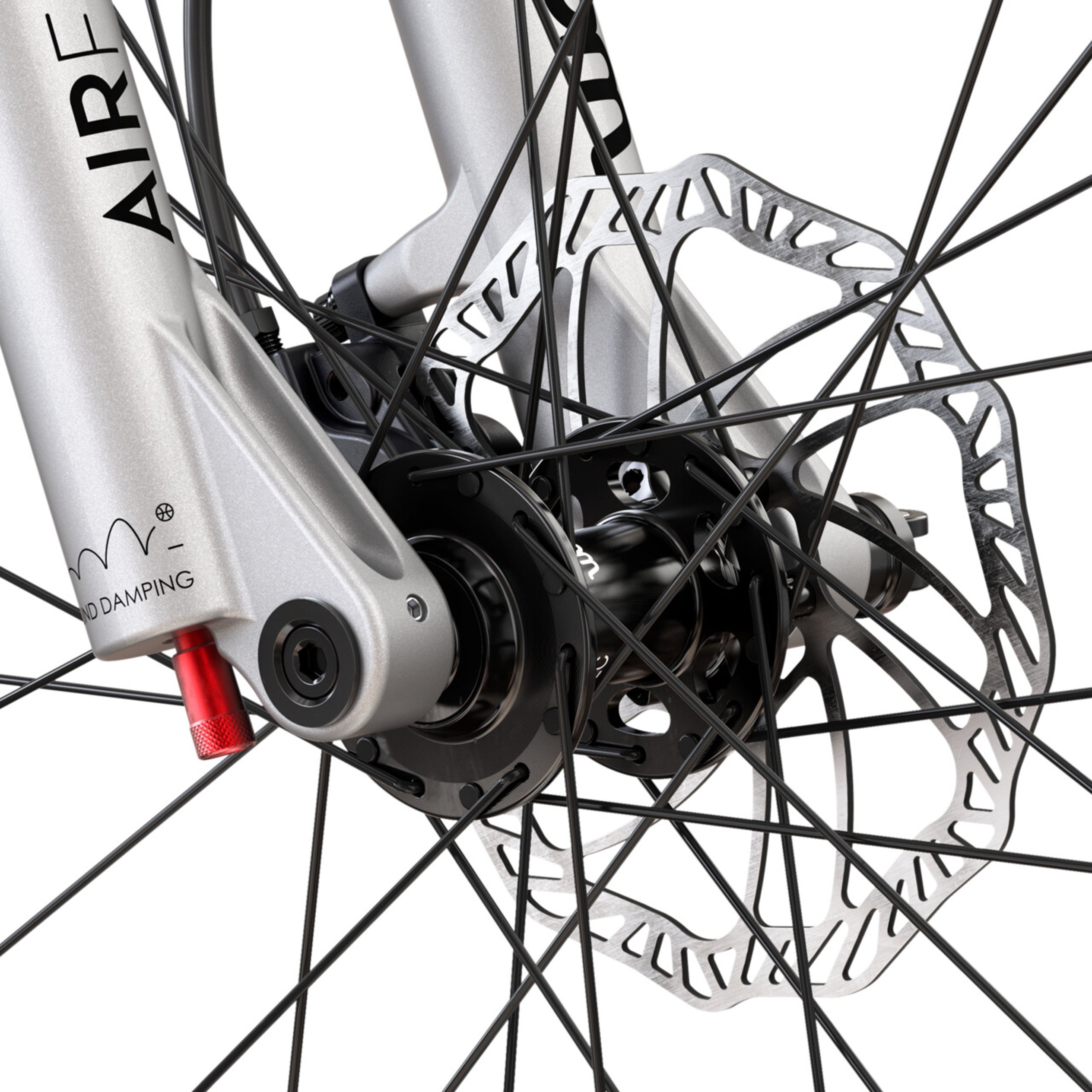 Die hochwertige und ans Fahrergewicht anpassbare Federgabel sorgt für Komfort und Kontrolle auf jedem noch so schroffen Terrain. Die einstellbare Druck- und Zugstufendämpfung ermöglicht eine genaue Anpassung ans Gelände und mit der Lockout-Funktion lässt sich die Gabel bei Bedarf sperren – für maximalen Fahrspaß, egal ob auf dem Trail oder am Nachhauseweg!