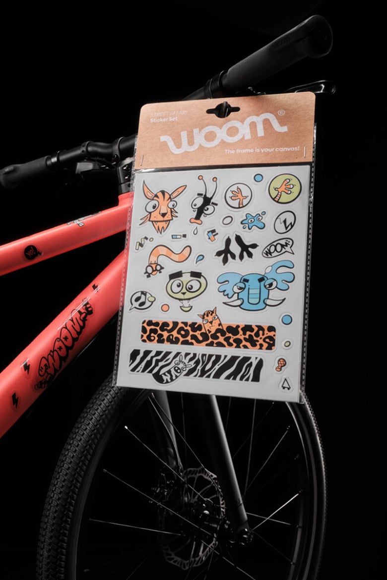 Mit den hochwertigen Sticker-Sets können junge Rider*innen ihr woom EXPLORE individuell gestalten. Die Aufkleber sind in zwei Varianten erhältlich und lassen sich einfach anbringen und rückstandslos entfernen.