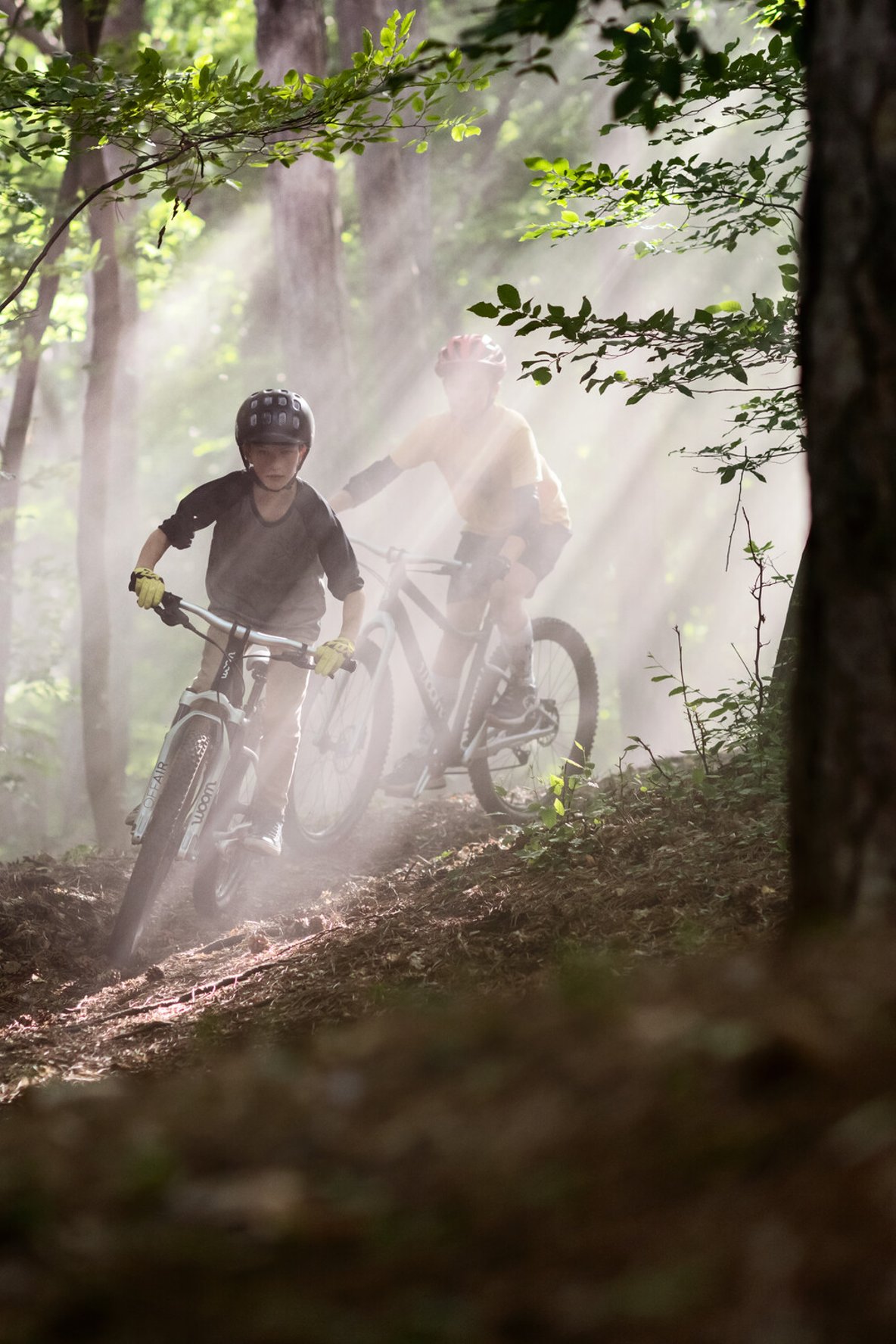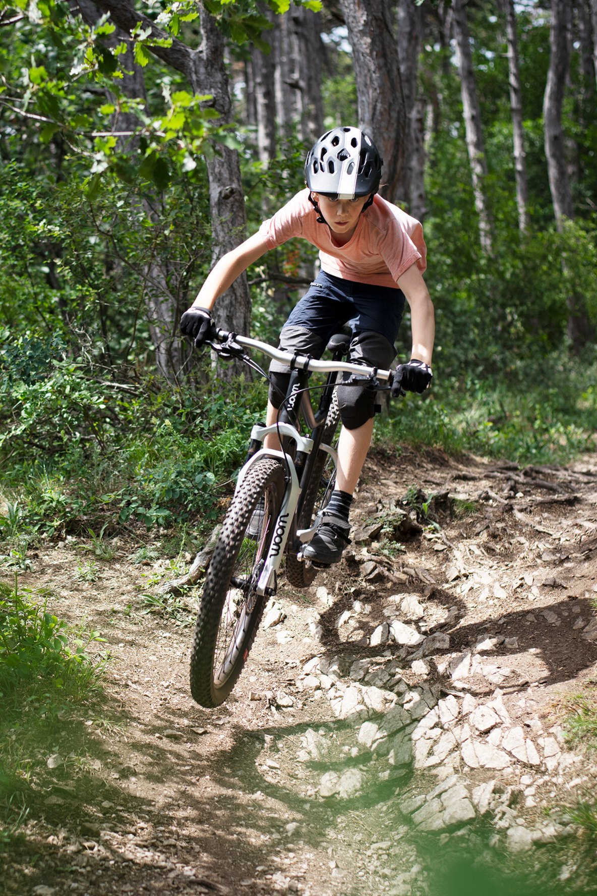 • Trails: Das Ultimative für Mountainbiker! Die schmalen Mountainbike-Pfade gibt es in verschiedenen Ausführungen je nachdem, ob sie ursprünglich alte Wanderwege sind, von Hand oder maschinell errichtet wurden. Der Untergrund ist teilweise nicht fest und euer Kind muss mit verschiedenen Hindernissen rechnen. Ähnlich wie bei Skipisten werden MTB-Strecken in unterschiedliche Schwierigkeitsgrade eingeteilt und farblich gekennzeichnet: leicht (blau) – mittel (rot) – schwierig (schwarz). Daran kann sich euer Kind gut orientieren und einschätzen, ob die Strecke seinem Können entspricht.