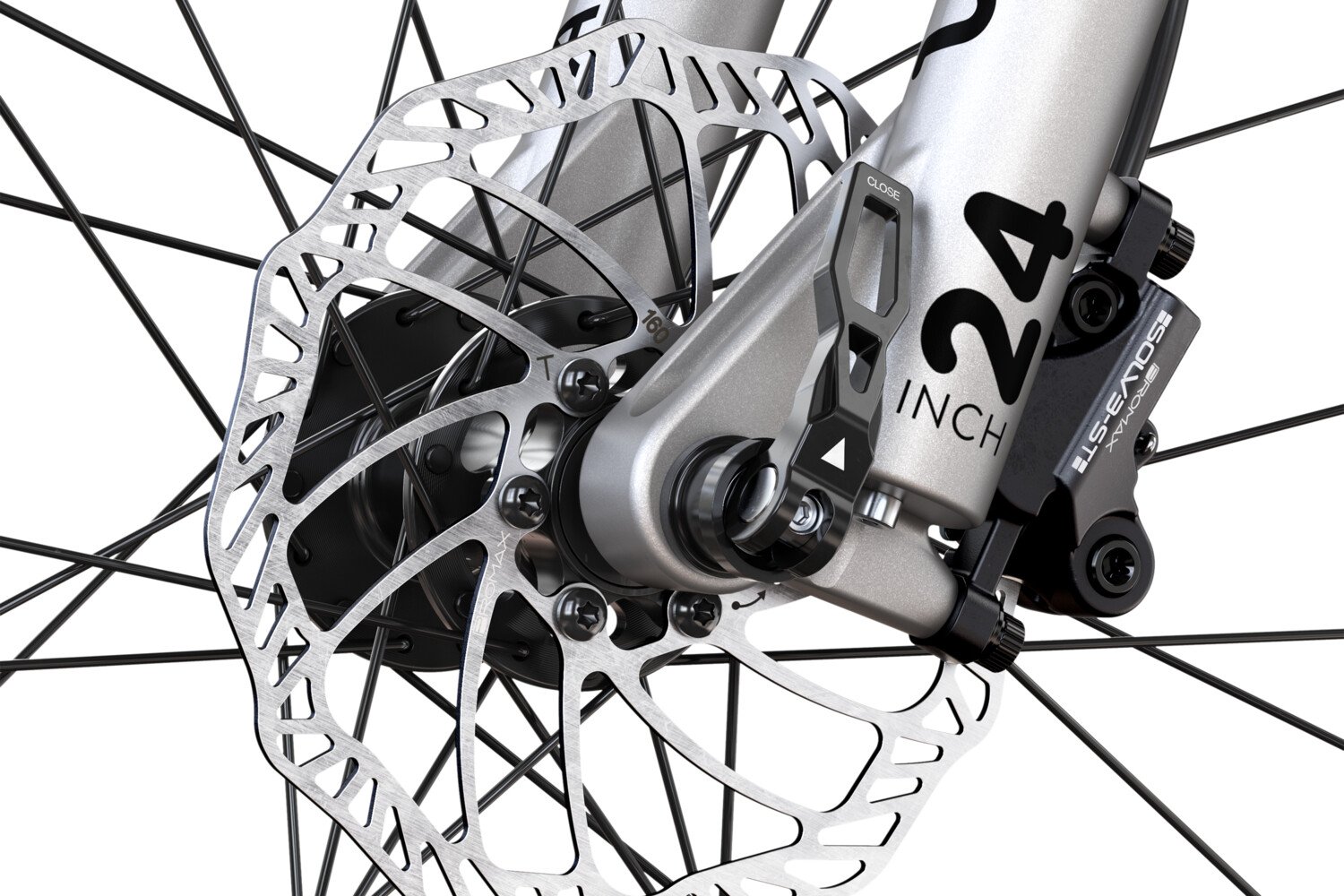 Easy-to-modulate disc brakes are teamed with special brake levers designed for children's hands to provide maximum stopping power in every situation including steep slopes and wet conditions.