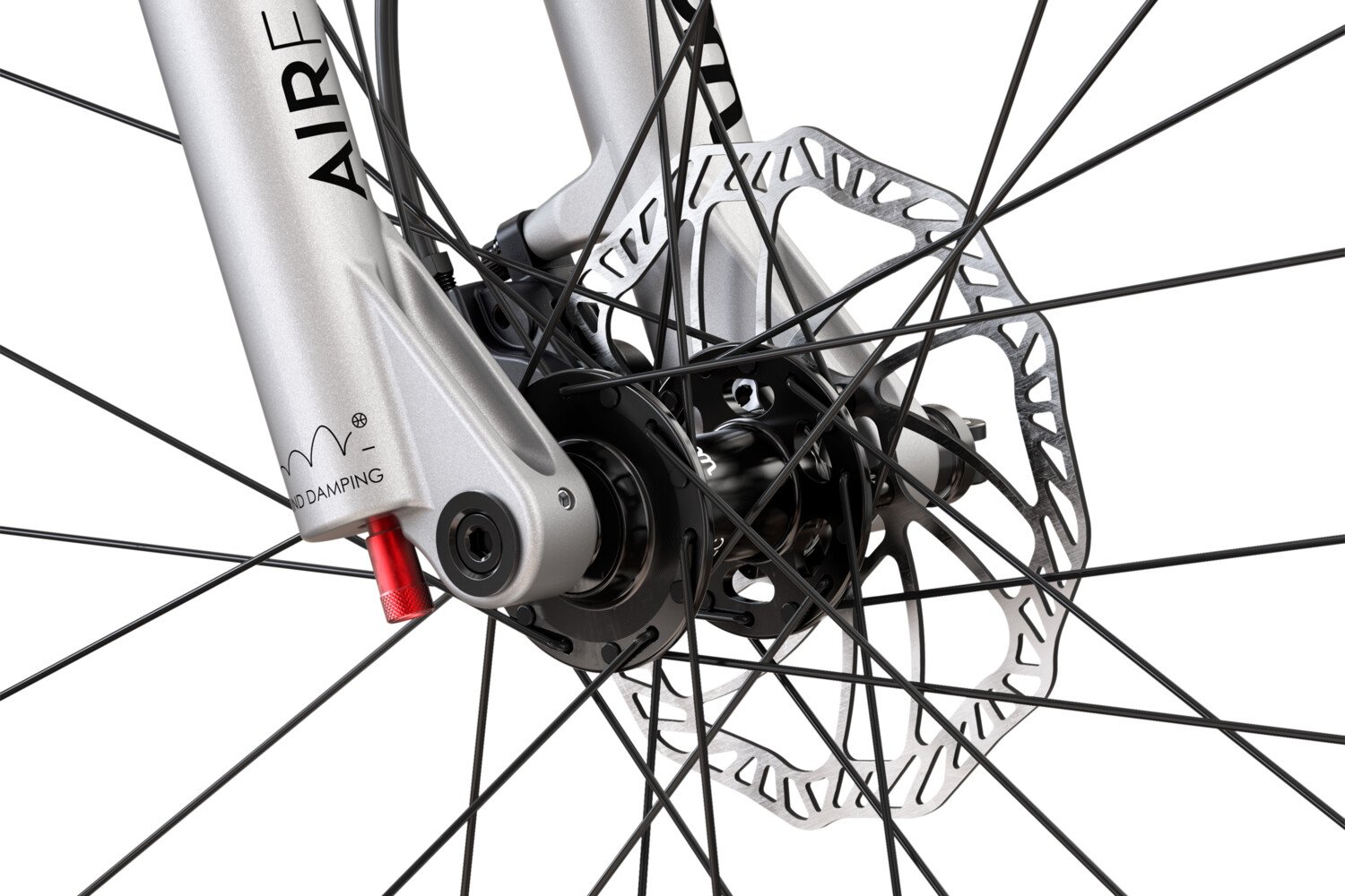 Comfort and control on the bumpiest terrain is a given thanks to the high-quality suspension fork, which can be adjusted to the rider’s weight. With adjustable compression and rebound damping, the fork can be tuned for the terrain and the day’s conditions, plus its lock-out function is a bonus on the climbs. For long days on the trail or skirting home through the forest, good times are guaranteed.
