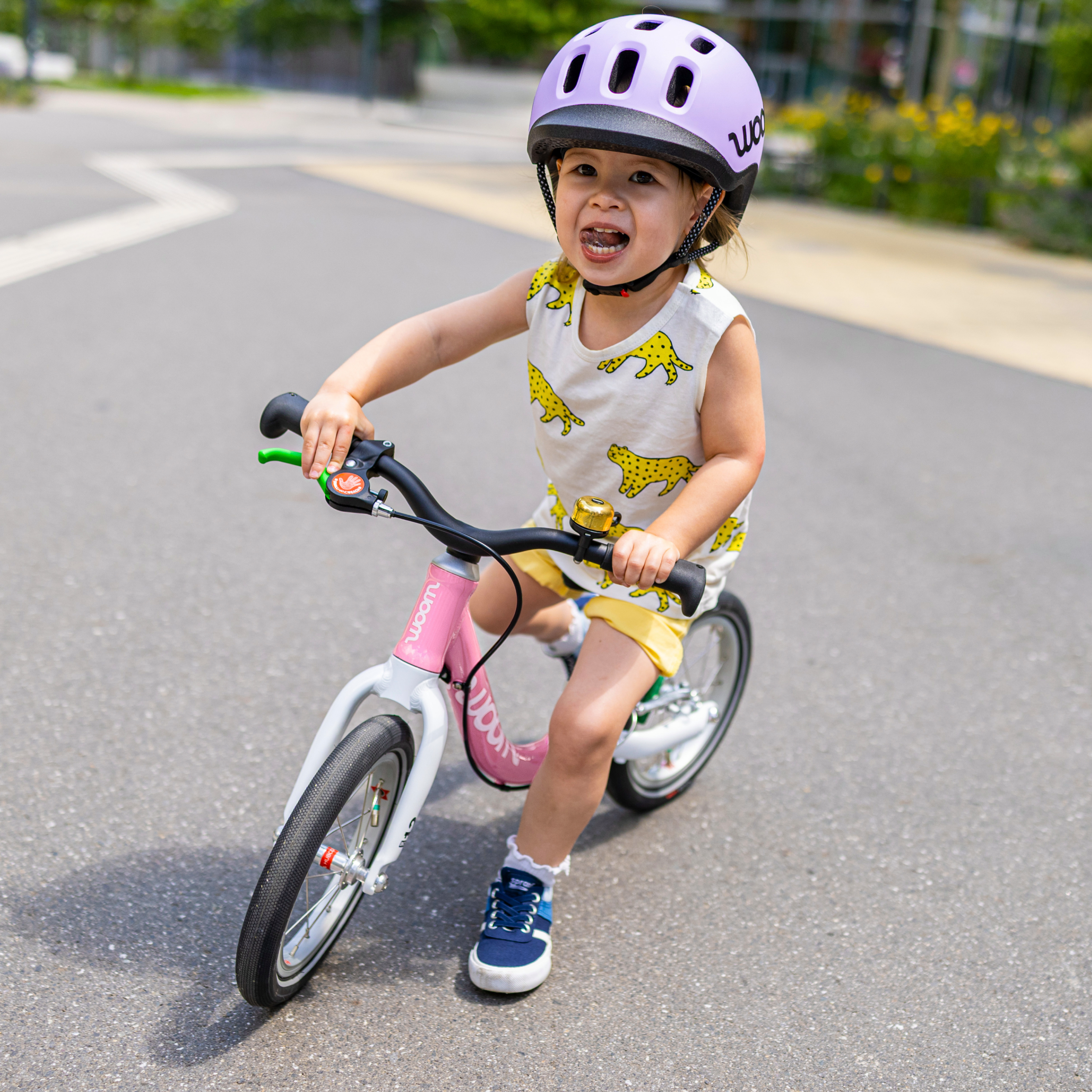 Learning to ride is fun and safe on this superlight balance bike with 14″ wheels and a safety-conscious design for kids aged 3 and up.