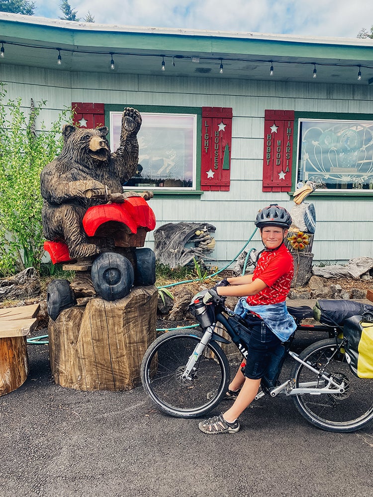 Because they needed to carry so much gear with them, they modified Shep’s bike to add storage space on the back. Now a little older and taller, Shep rode the woom OFF, was perfect for the Oregon coast ride.