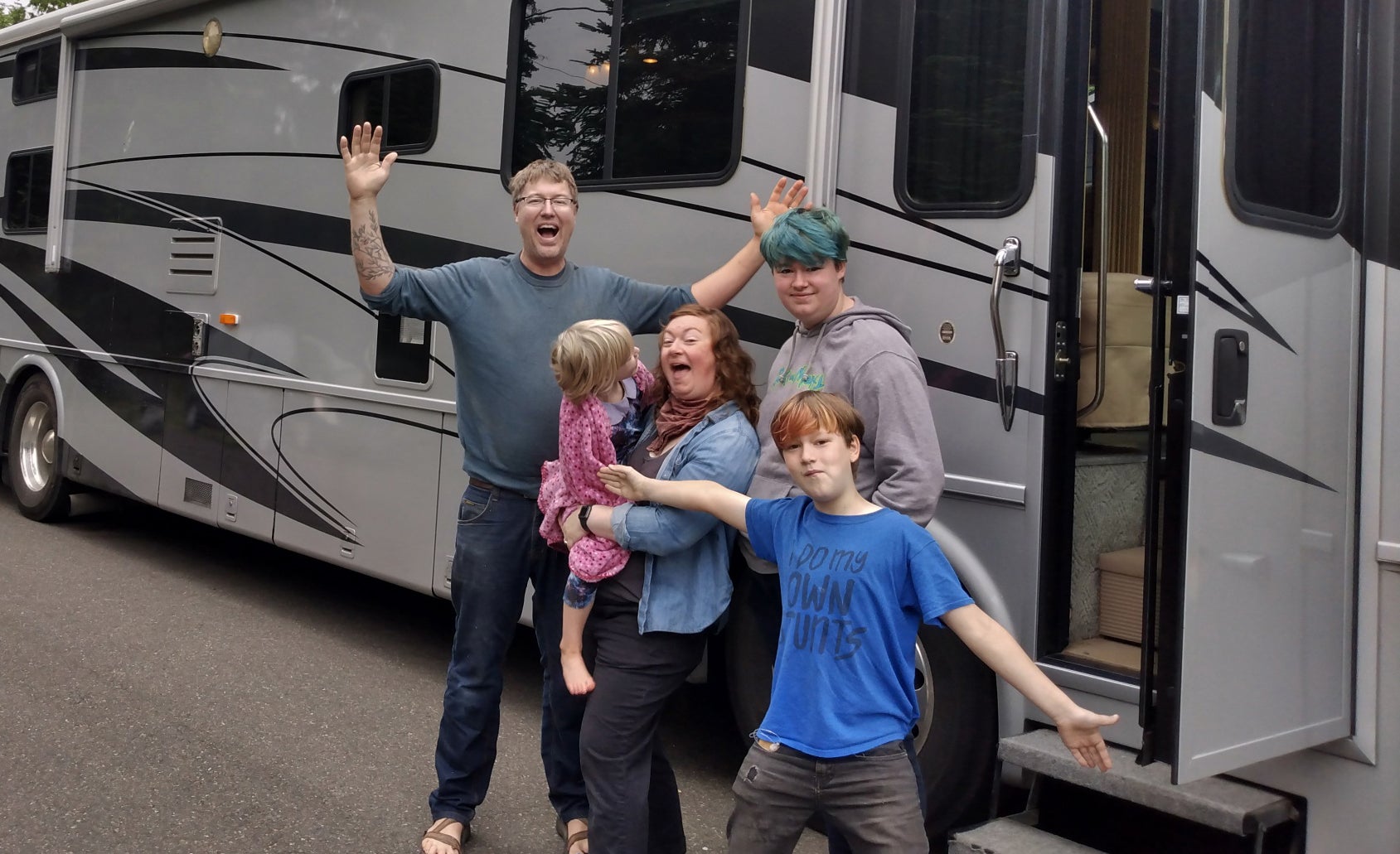 Originally, the plan was for Liz and Shep to bike the whole Canada-to-Mexico route while dad James and siblings Hazel (15) and Elsa (5) took the RV as their support squad. This way, the two cyclists wouldn’t have to carry everything while riding, making it a little easier for Shep’s less experienced mom. However, after taking a week to travel from Blaine to Silverdale, Washington, the RV started having mechanical issues, bringing the trip to an abrupt standstill.