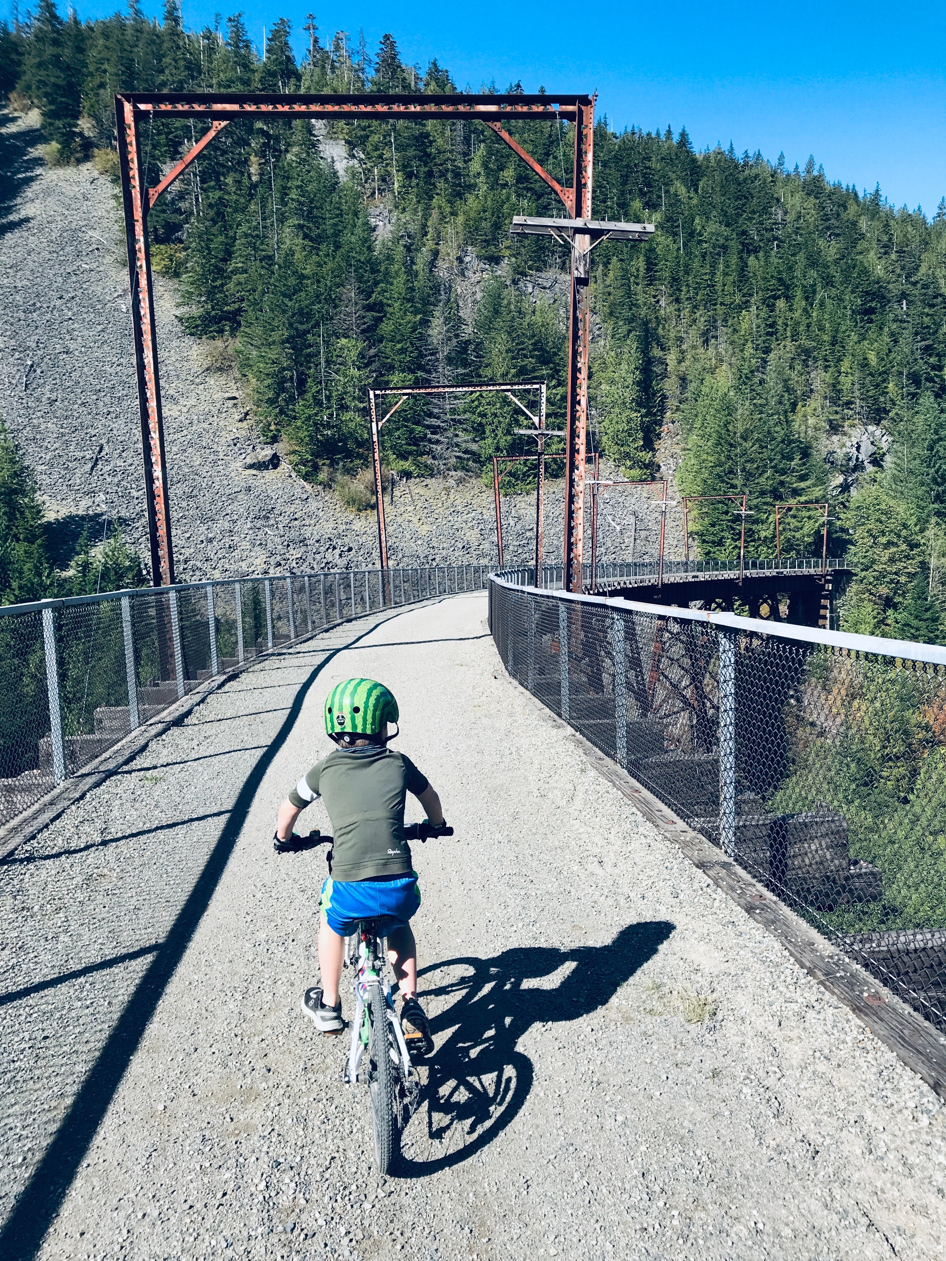 "The trail we took crosses the state of Washington, and it’s an awesome rail-to-trail conversion. Rail-to-trail conversions are usually low-grade, which is really good for kids to ride bikes. They’re pretty scenic, not too challenging in terms of the level of overall difficulty, usually gravel, and there also usually isn’t a lot of car traffic to deal with, so these are great trails.