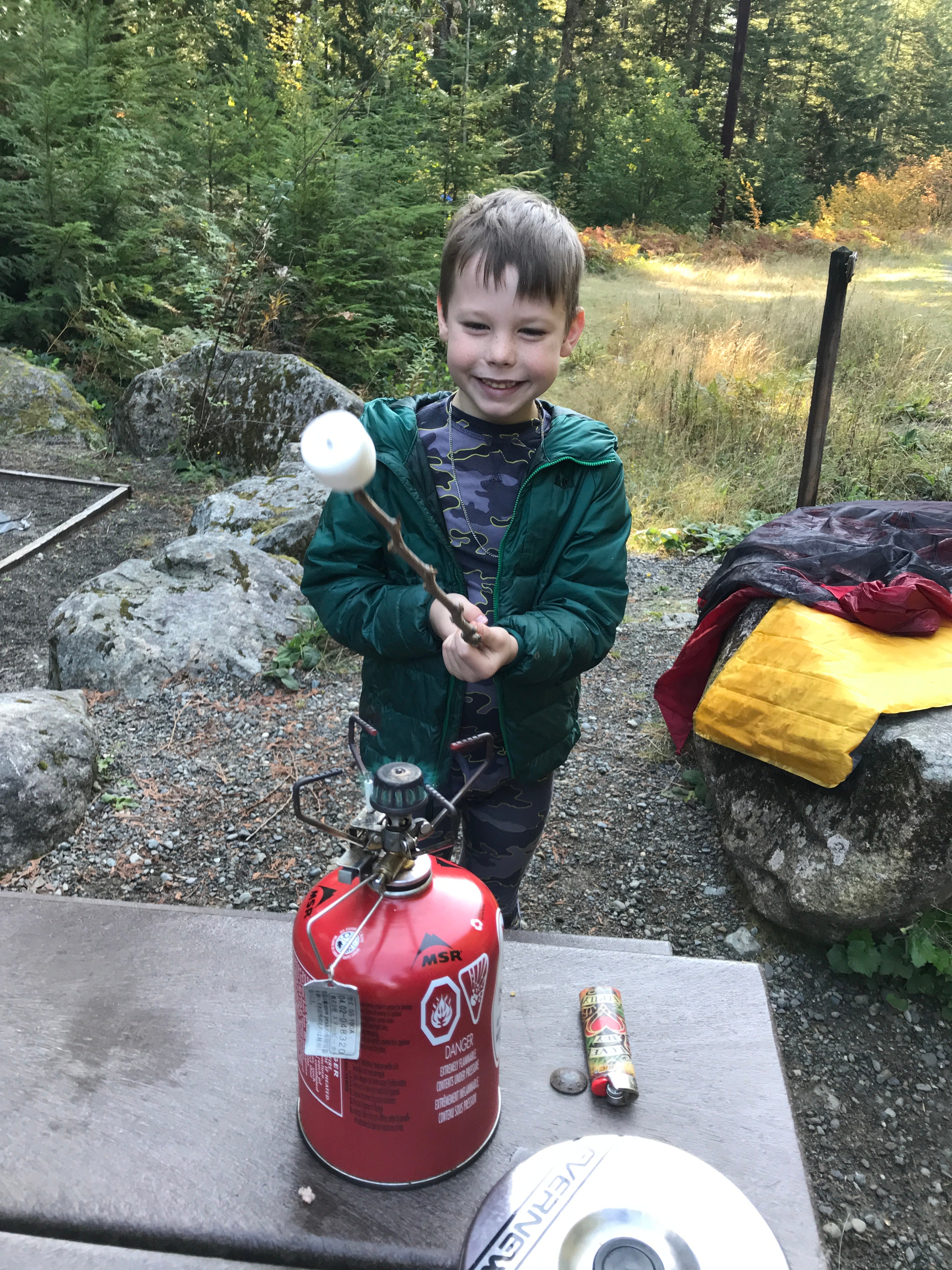 For their first trip, Tyler and Theo headed to a little island just outside of downtown Seattle, called Blake Island. Accessible only by boat, Blake Island has miles of trails, campsites, striking views of Mount Rainier, and driftwood-scattered beaches. Tyler and Theo biked about 10 to 15 miles in total during their first overnight trip. Talk about one wheelie fun adventure!