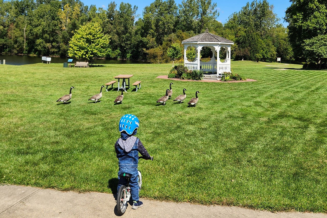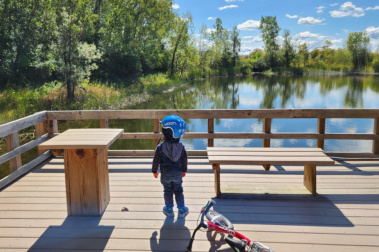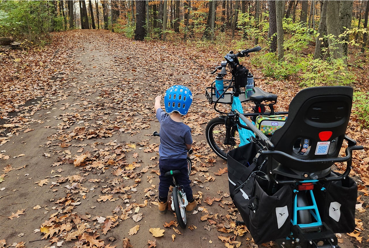 One day, on one of our bike adventures, my son and I rode together to a more extensive park with a series of connected bike paths. Jack let me know when he wanted to get out and ride on his own—after all, getting his buy-in was key to ensuring his high spirits. He then proceeded to amble along on his balance bike for over 3 miles – approximately triple the longest distance he’d ever done previously! Powering him through this groundbreaking experience were a few encouraging facts: he knew at any point if he was tired, he could hop back in the Clubhouse of the Tern GSD. Plus we weren’t constrained to returning to our car at the trailhead – instead I let Jack navigate wherever his heart desired in the trail system… and the new scenery kept him going strong.