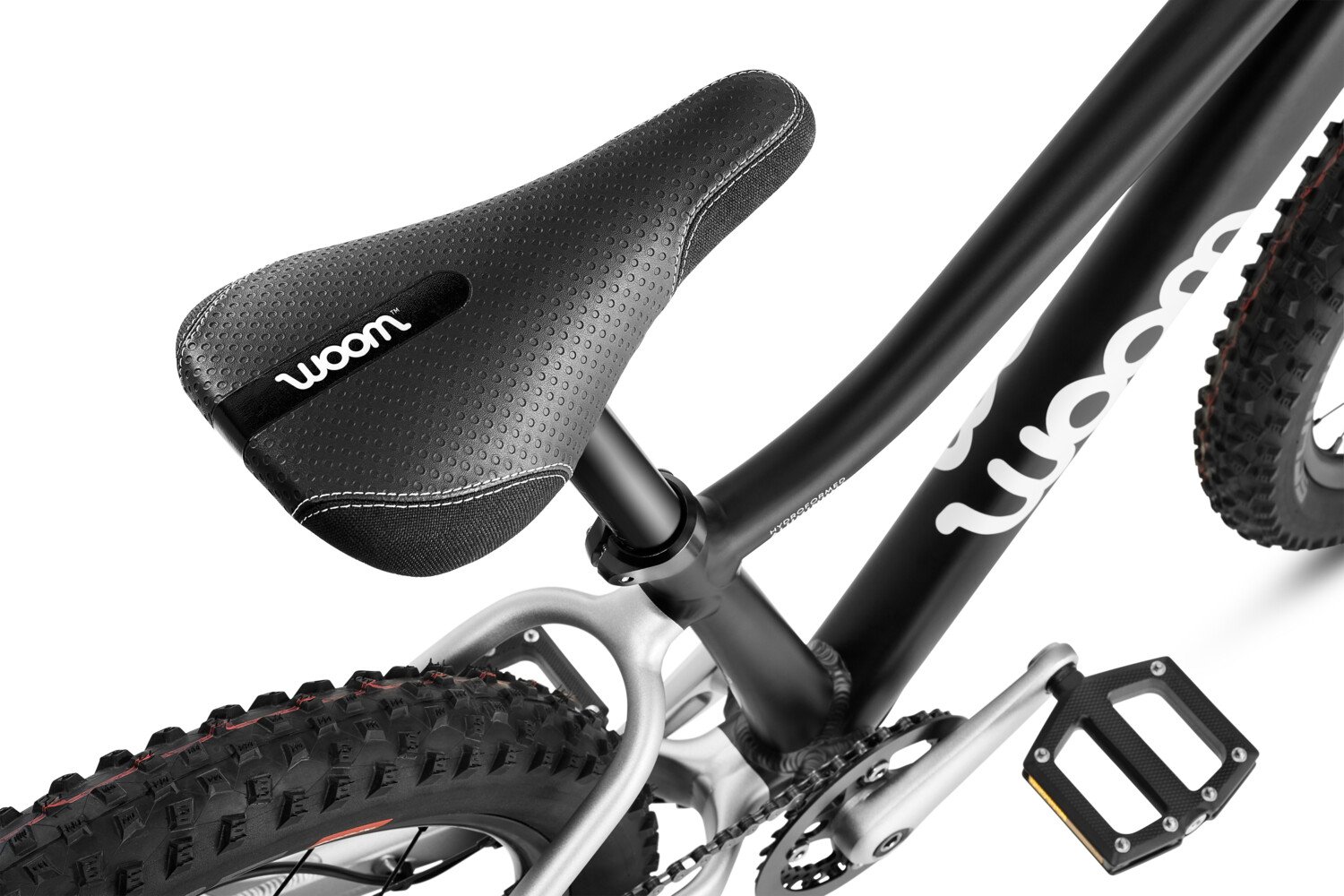 Personalize your bike! Every woom OFF is delivered complete with a set of stickers in four colors. Place them on your rims and top tube to customize your bike!