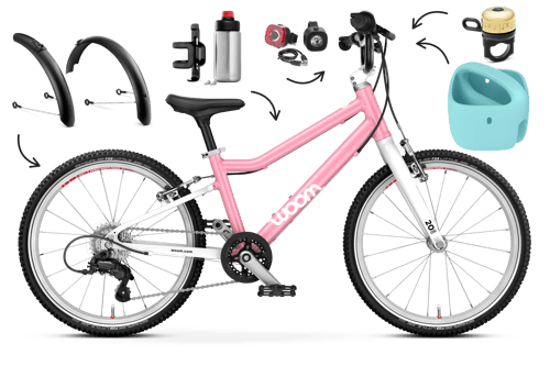 4.50 (24 reviews)The superlight, versatile children's bike with 20″ wheels, a safety-conscious design, BMX-style bars, and seven easy-to-operate gears for kids aged 6 and up. Fully equipped models include a set of BEAM Bike Lights, SNAP Click-On Fenders, the GLUG Stainless Steel Bottle and bottle cage, the VIENNA Bell, and our best-selling POP Kids' Bike Basket. Kickstand included.