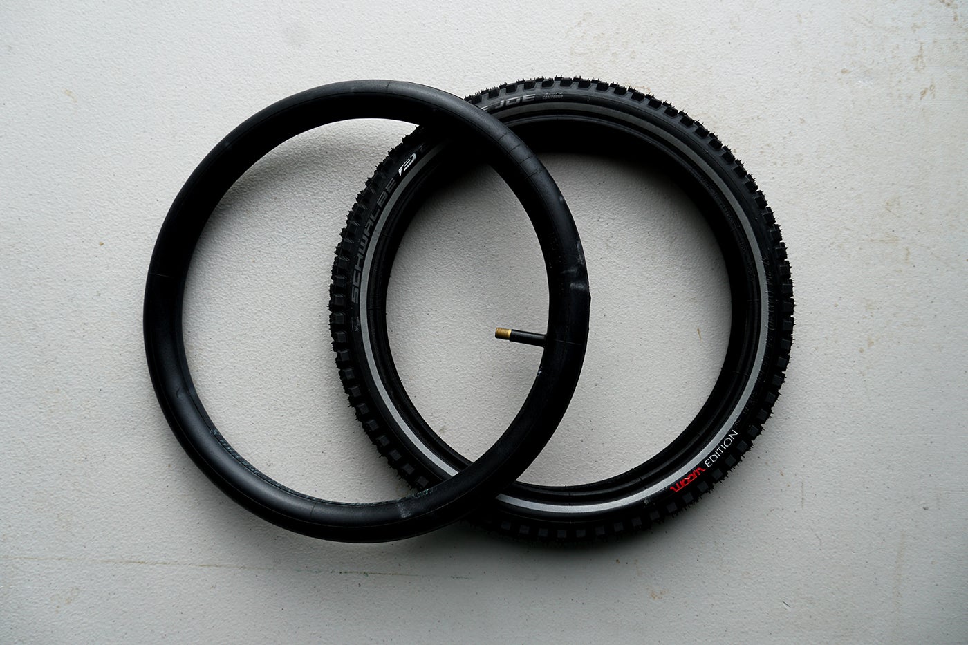 All woom bikes are outfitted with standard tube/tire combinations mounted on aluminum rims. The tube, which is made of rubber and resides inside your tire, inflates (or deflates) via pneumatic (air) pressure. The tire serves as protection for the tube, preventing damage or puncture most of the time.
