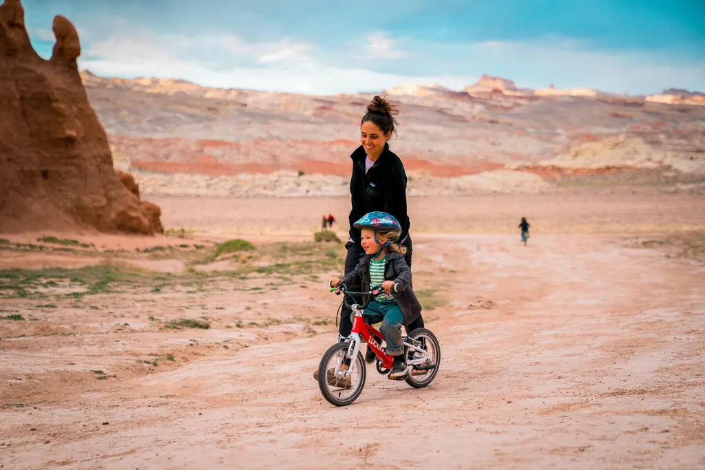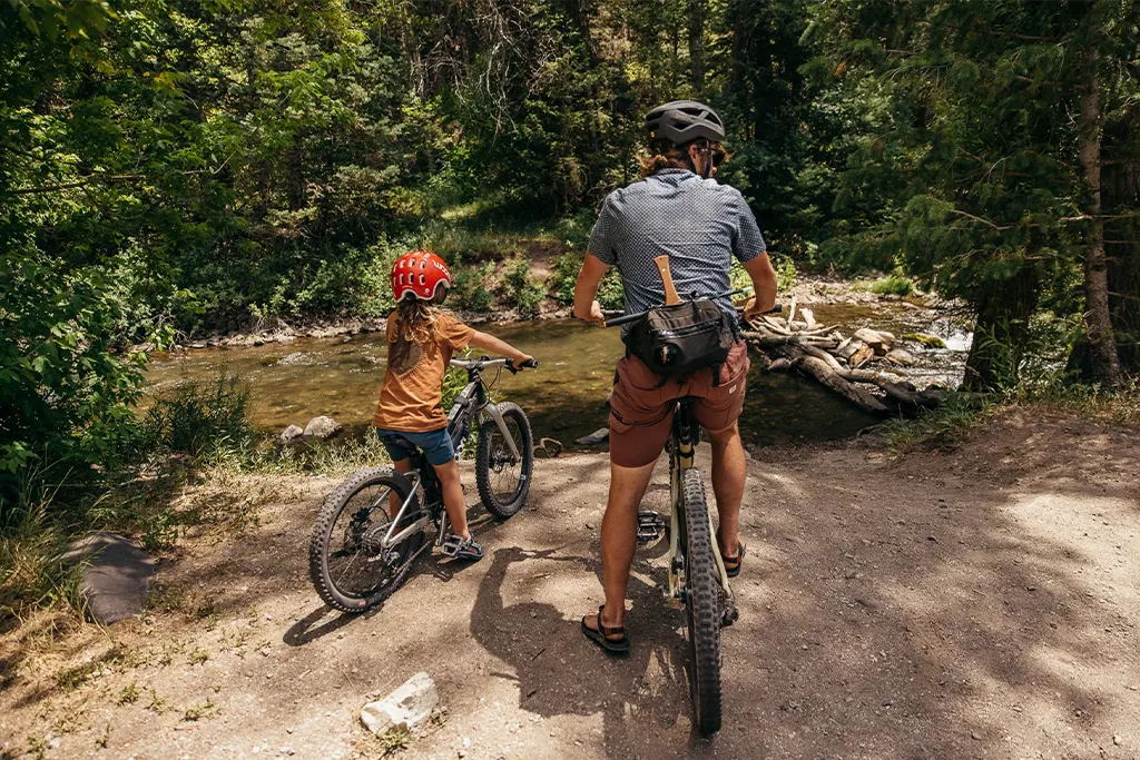 Riding off-road typically means being immersed in nature - providing an excellent opportunity for outdoor exploration. Within reason, try letting your child lead and pick which way to turn. Stop to check out cool bugs and pretty views. Kids enjoy having a special waypoint or end destination to look forward to, such as a park, swimming hole, climbing tree, or a picnic.