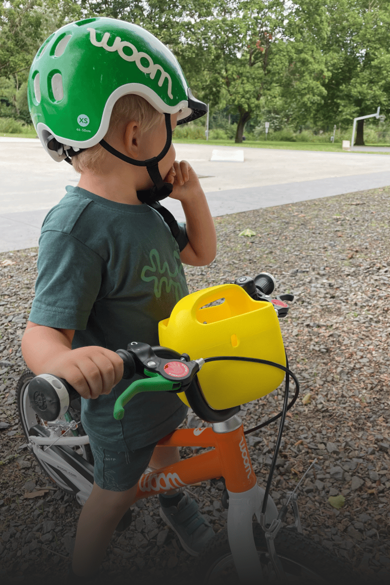 Dit lichte, veelzijdige fietsmandje voor kinderfietsen, gemaakt van flexibel, BPA-vrij materiaal, kan eenvoudig aan het stuur worden bevestigd en past op de woom ORIGINAL/GO 2, 3 en 3 AUTOMAGIC en de woom GO 4.